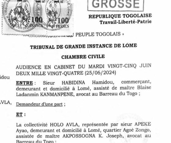En mai 2022, après plusieurs mois de procédures, le Tribunal de Première instance de première classe de Lomé rend sa décision dans le dossier opposant la collectivité Holo-Avla au sieur Hamidou Aboudramane. La requête introduite par ladite collectivité visait à obtenir confirmation de son droit de propriété sur un domaine d’une contenance superficielle de 07 hectares, et l’expulsion et la démolition des ouvrages érigés sur ce domaine.